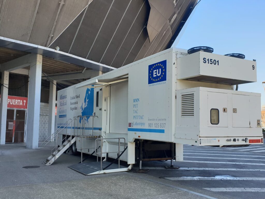 Mientras dure el cambio del equipo de resonancia y de acuerdo con el compromiso de calidad que tenemos con nuestros pacientes, hemos instalado una unidad móvil de resonancia en el exterior de nuestra clínica, para que los pacientes que se quieran hacer esta prueba puedan realizarla sin necesidad de esperas.